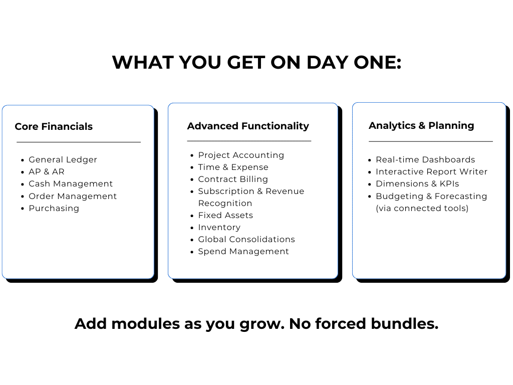 ✔ Role-based dashboards for CFO, FP&A, AP, AR, and operations