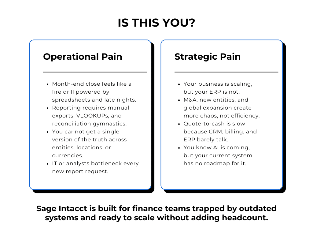 We specialise in Sage 300 → Intacct migrations. Most teams reduce close time and reporting workload by 50–70%.